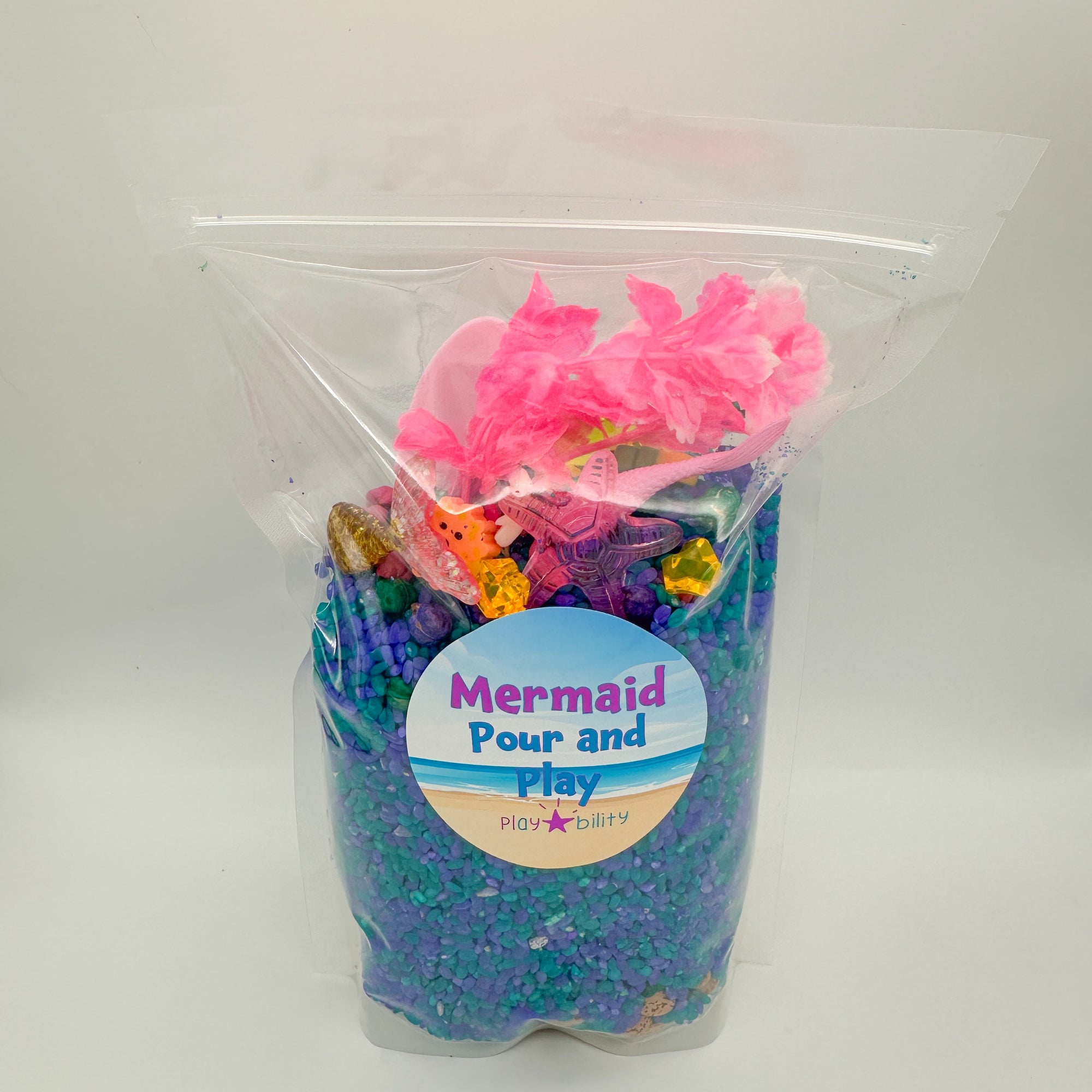 Look at this stuff, isn’t it neat?! Our Mermaid Pour and Play will open up a “whole new world” of play for your little one as they engage in magical mermaid fun!